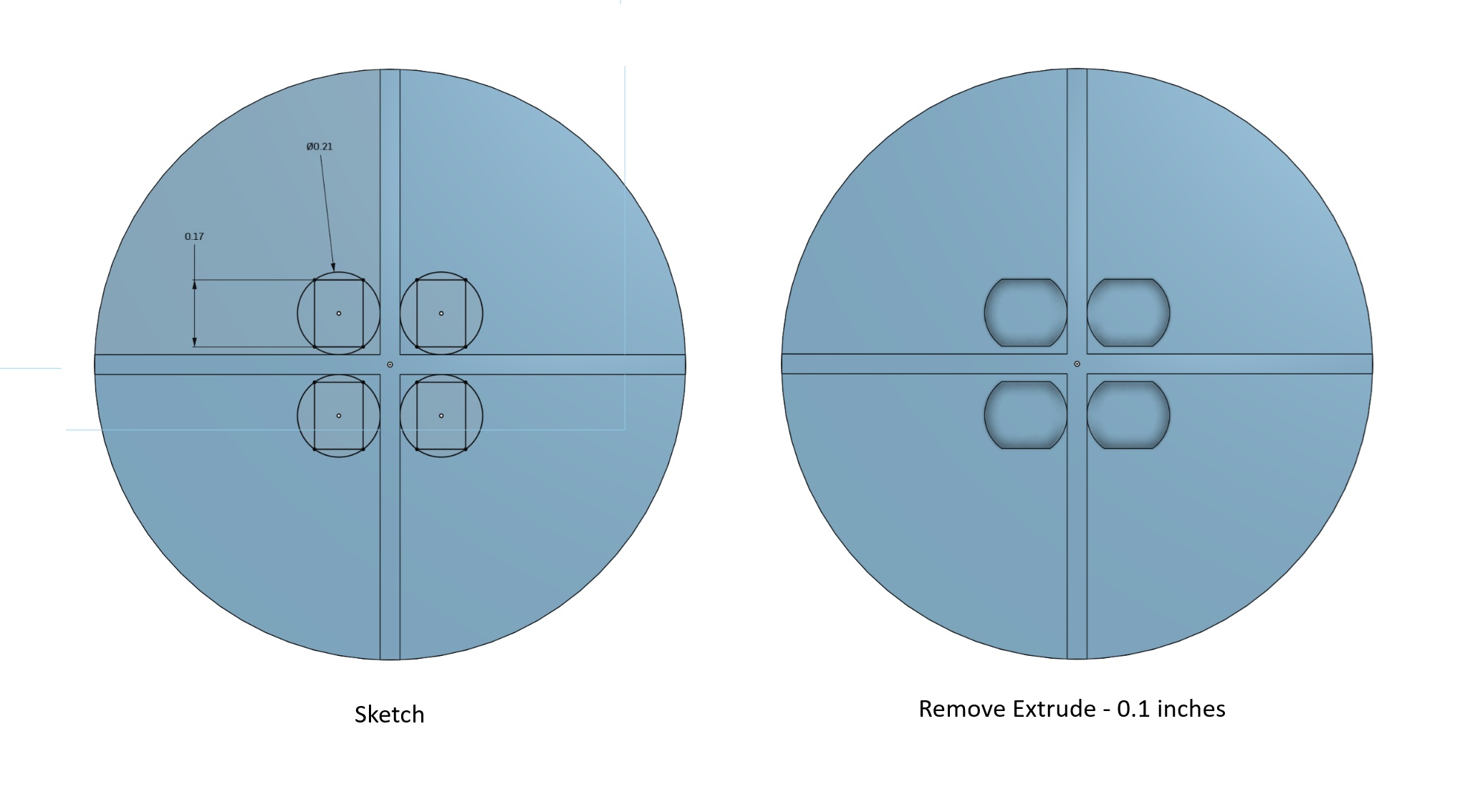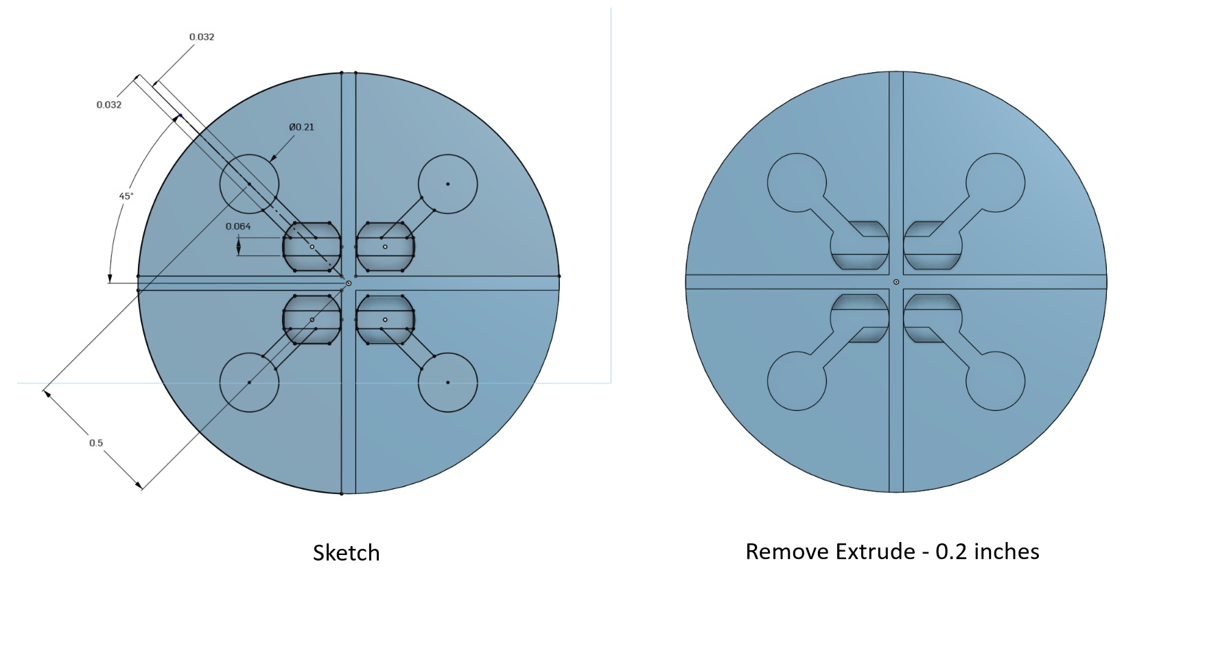 The LDR bracket was designed using OnShape and printed using a Prusa 3-D printer. The slots that hold the four LDRs were designed in two steps.