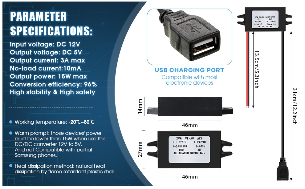 This provides 12 volts at the phone charger box that the DC Converter uses to charge a phone.